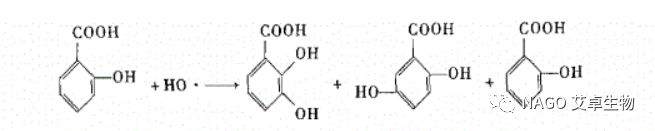 水楊酸與羥自由基(·OH)反應(yīng)生成可 2,3- 二羥基苯甲酸,它在 510 nm處有最大吸收波長(zhǎng)。利用過(guò)氧化氫(H2O2)與七水硫酸亞鐵(FeSO4·7H2O反應(yīng)生成·OH,加入具有清除自由基能力的物質(zhì),可抑制2,3-二羥基苯甲酸生成,降低 510 nm 處的吸光度。