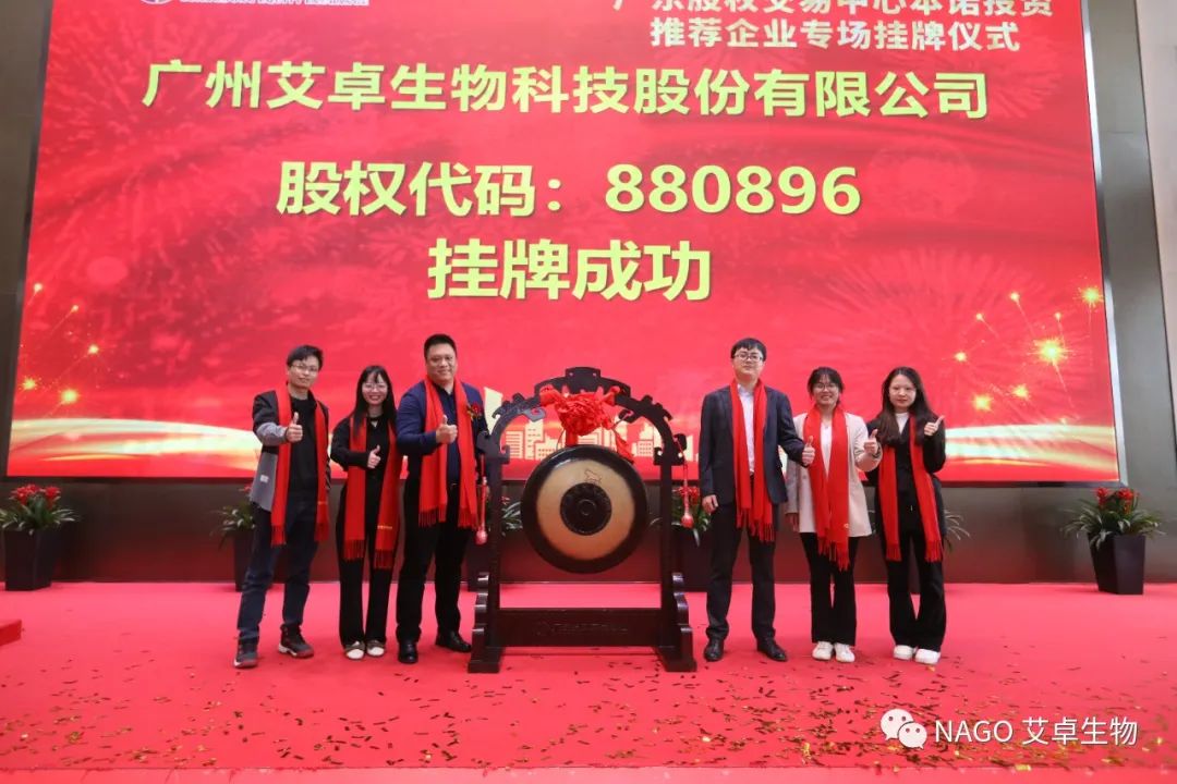 2023年3月3日,廣州艾卓生物科技股份有限公司在廣東股權(quán)交易中心新四板掛牌成功,股權(quán)代碼【880896】,此次掛牌成為艾卓發(fā)展史上又一重要里程碑。