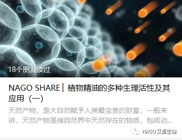 在第一期《NAGO SHARE ▏植物精油的多種生理活性及其應用(一)》中,我們向大家介紹了天然產物中植物精油的使用歷史、特性及多樣的生理活性,其中我們著重介紹了植物精油優秀的抗氧化性能。在本期文章中,我們將繼續深入探討植物精油所具有的其它突出生理活性。